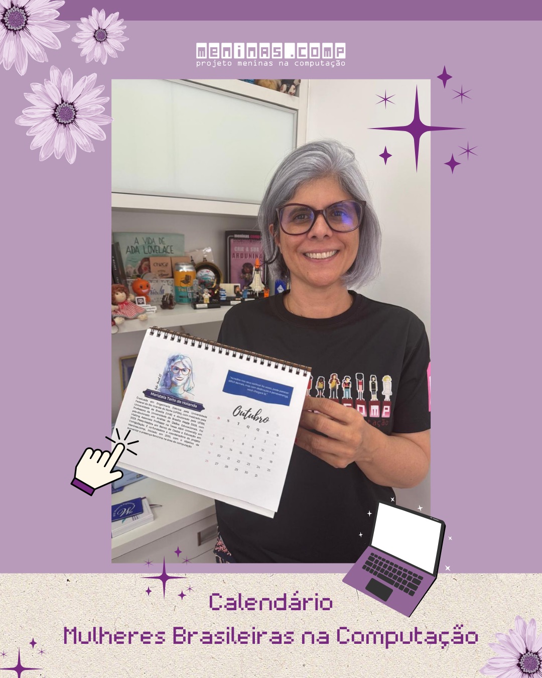 A Professora Maristela, uma das coordenadoras do Meninas.comp, foi homenageada no Calendário Mulheres na Computação no Brasil, edição 2025. O calendário é uma iniciativa da UFRGS e da UNIPAMPA, homenageando mulheres cientistas com alto impacto na computação no Brasil. A Prof. Maristela está representando o mês de outubro do calendário. Parabéns, Prof. Maristela!!!