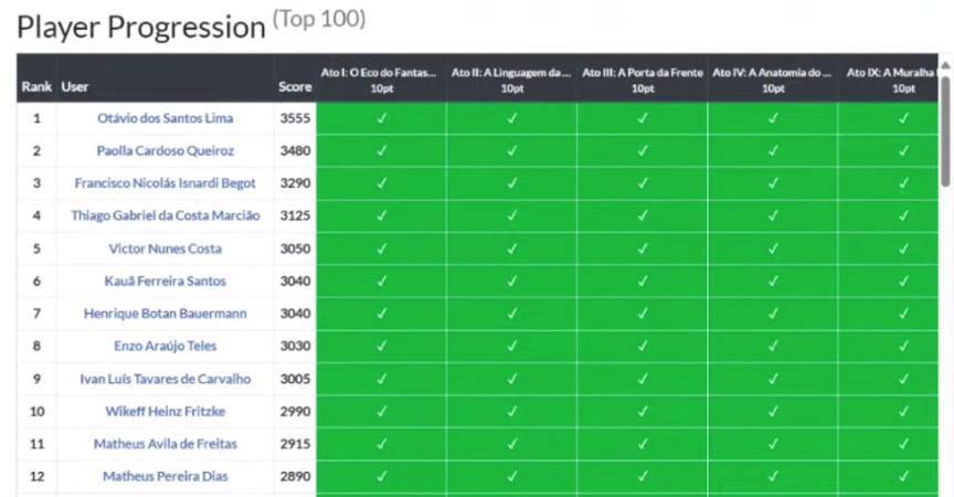 A competição, realizada no dia 04/10/2025, reuniu estudantes e profissionais de todo o país em desafios reais de segurança ofensiva, abrangendo coleta e análise de informações públicas, vulnerabilidades web, análise de tráfego de rede, conhecimento em criptografia e codificação, engenharia reversa, análise forense e diversas outras.